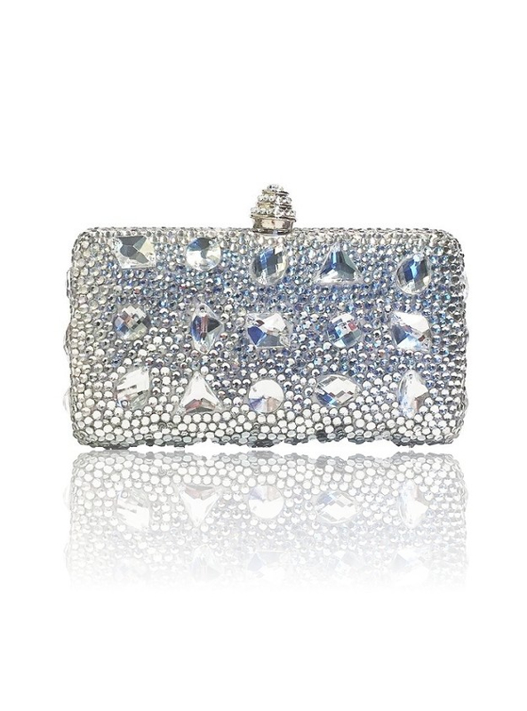 Crystal rectangle clutch bag. The clutch bag is embellished with large crystals and comes with a chain strap to wear over the shoulder.Dimensions 16 x 10 x 6cm.