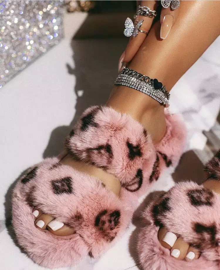 Furry flat slippers